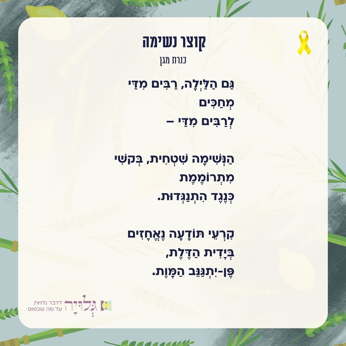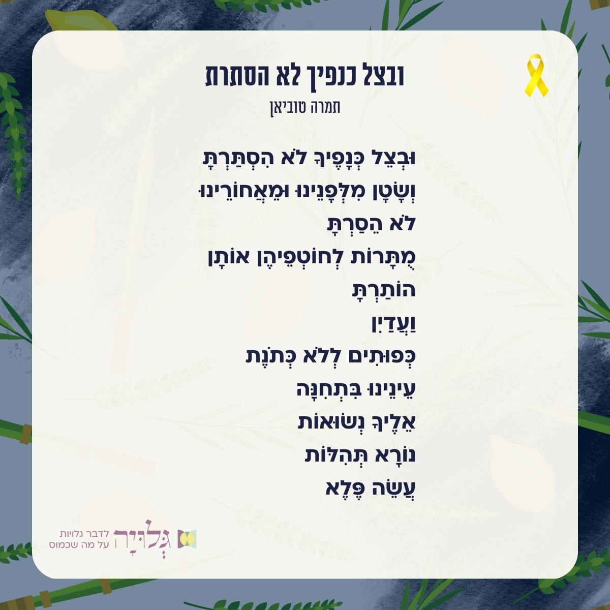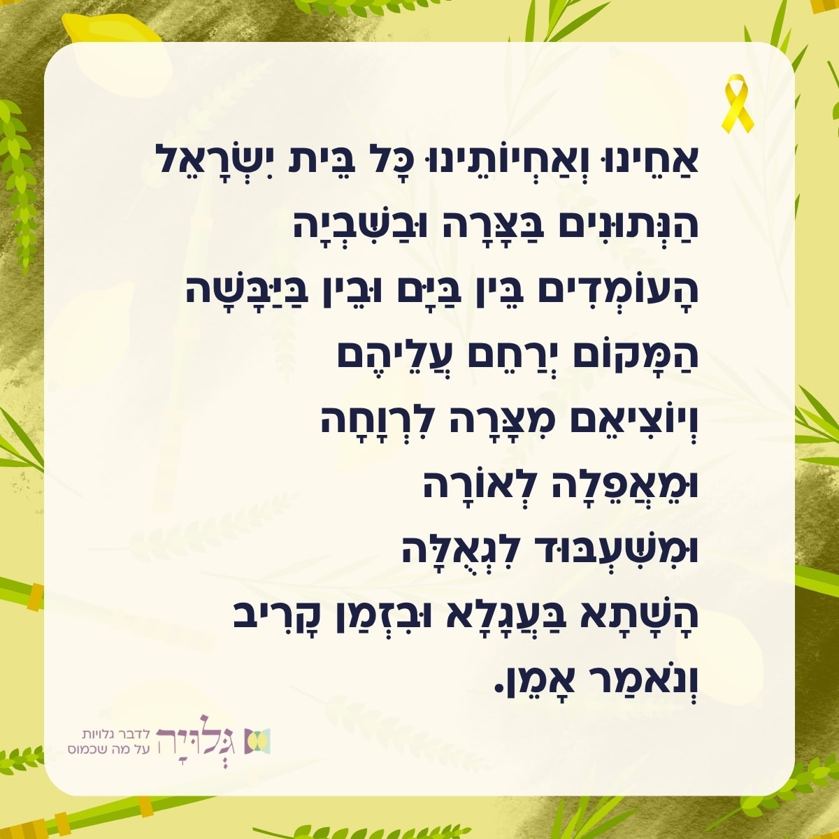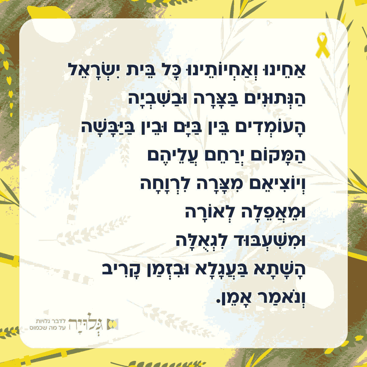 נסיים בברכה מהפיוט שכתבה הרַבָּה פרופ׳ דליה מרקס על בסיס מבנה פיוטי ההושענות המסורתיים: