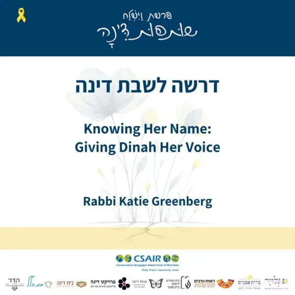דרשה לשבת דינה – באנגלית – מאת הרב קייטי גרינברג המציעה מודל של תגובה אמפתית למי שניצלו מטראומה של אלימות מינית: מיקוד באדם, לא באירוע.