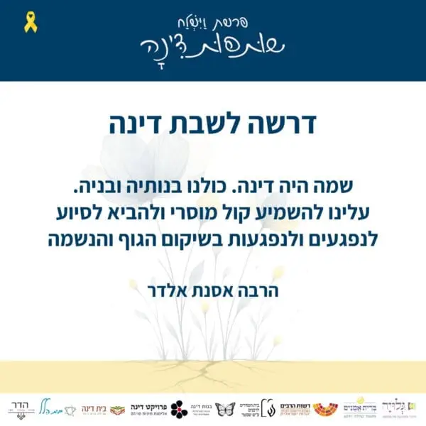 מתכוונים לשאת דבר תורה לכבוד שבת דינה בבית הכנסת או בשיעור בזמן אחר בסוף השבוע? אנא ספרו לנו על כך!