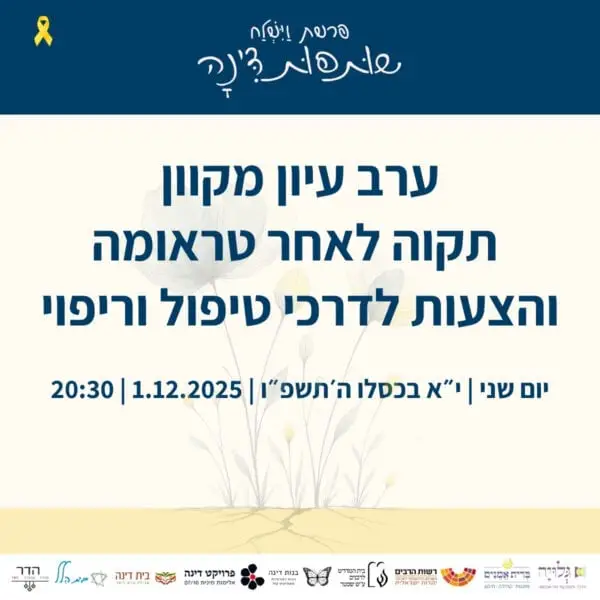 ביום שני, י״א בכסלו ה-1.12 בשעה 20:30 יתקיים ערב מקוון על הקשר בין טראומה למיניות.