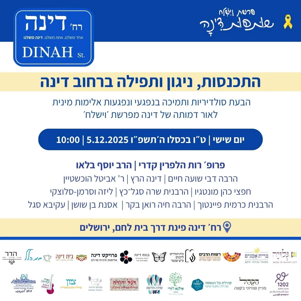 נתכנס ביום שישי ט״ו בכסלו ה׳תשפ״ו, 5.12.2025 בשעה 10:00 ברחוב דינה.
