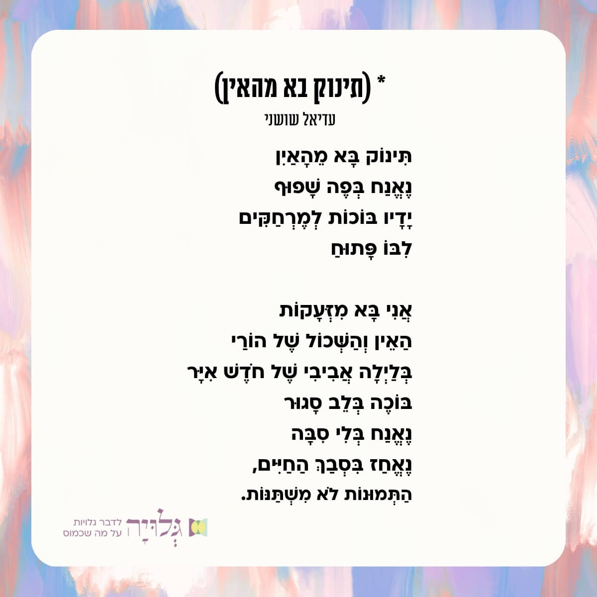 לקריאת שיריו של עדיאל שושני בגלויה, היכנסו >>