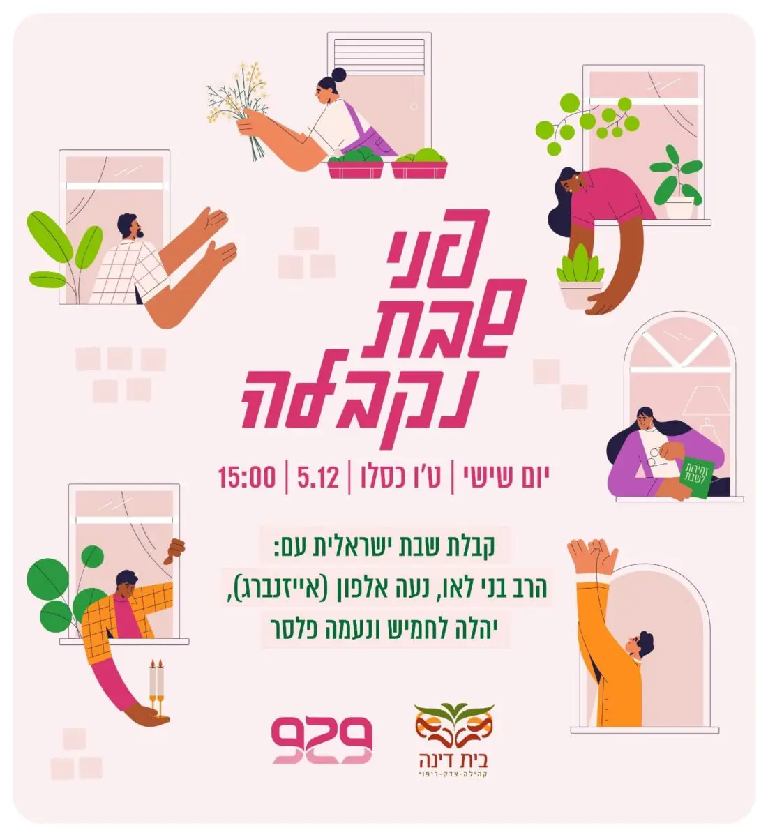 בקבלת השבת יקבל מקום העיסוק בדמותה של דינה לאורך השבוע בעקבות פרשת ׳וישלח׳, עם אירוח של נעמה פלסר.